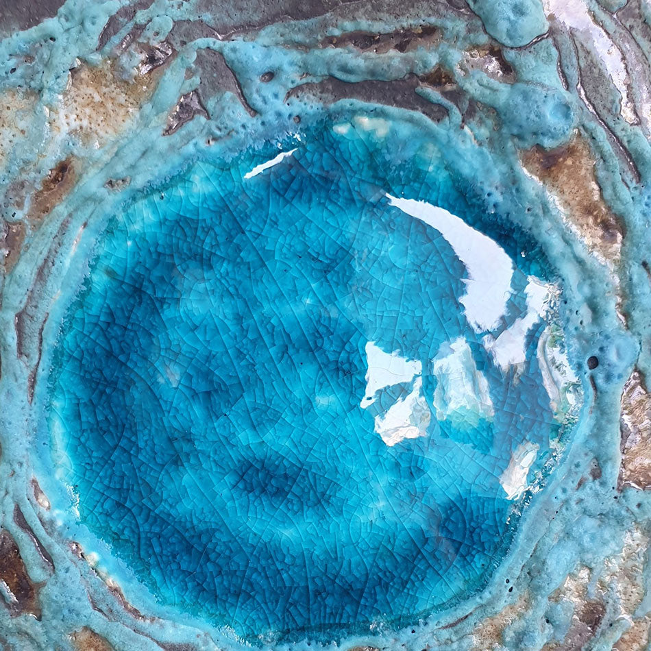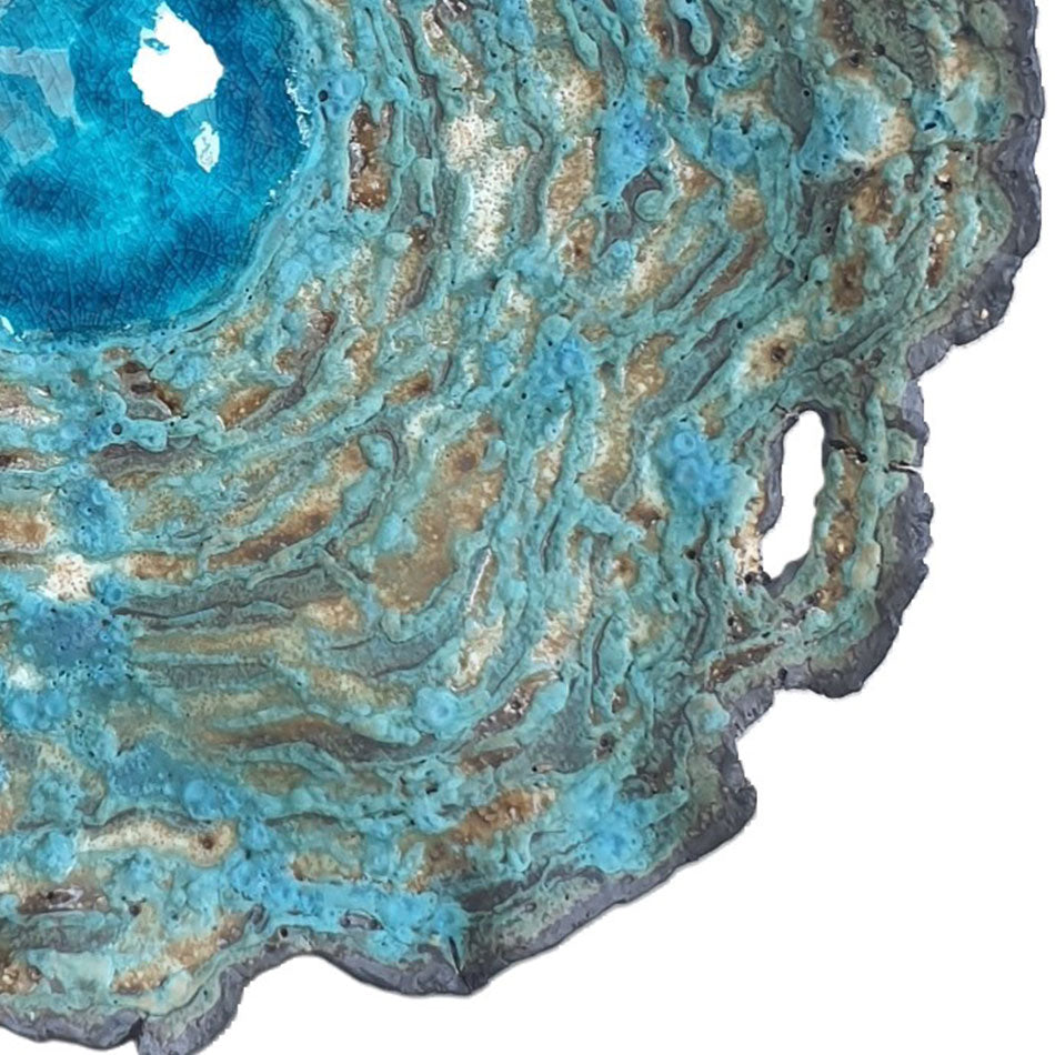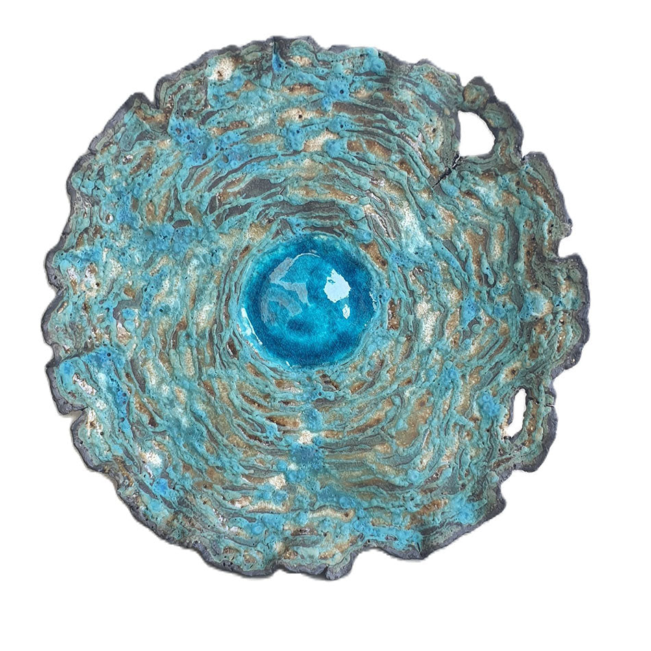 Karine Legay is a french Ceramist. Her artworks are always inspired by nature, natural elements like lava, earth and water. She likes to focus on contrasts between organic shapes and very smooth and shinny glazes, betweendark clay and bright turquoise color, or between pure shapes and very rough textures. She has recently been selected to work on commissions for two luxury hotels murals and decorative pieces. One of her creations has been shortlisted by the Dubai Ceramic Award 2020. Her series "When lava meet the ocean 1" has been exhibited at SIKKA ART FAIR 2022