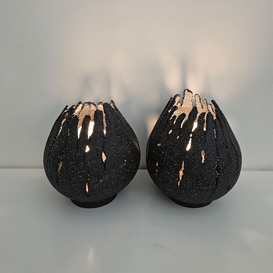 Karine Legay is a french Ceramist. Her artworks are always inspired by nature, natural elements like lava, earth and water. She likes to focus on contrasts between organic shapes and very smooth and shinny glazes, betweendark clay and bright turquoise color, or between pure shapes and very rough textures. She has recently been selected to work on commissions for two luxury hotels murals and decorative pieces. One of her creations has been shortlisted by the Dubai Ceramic Award 2020. Her series "When lava meet the ocean 1" has been exhibited at SIKKA ART FAIR 2022