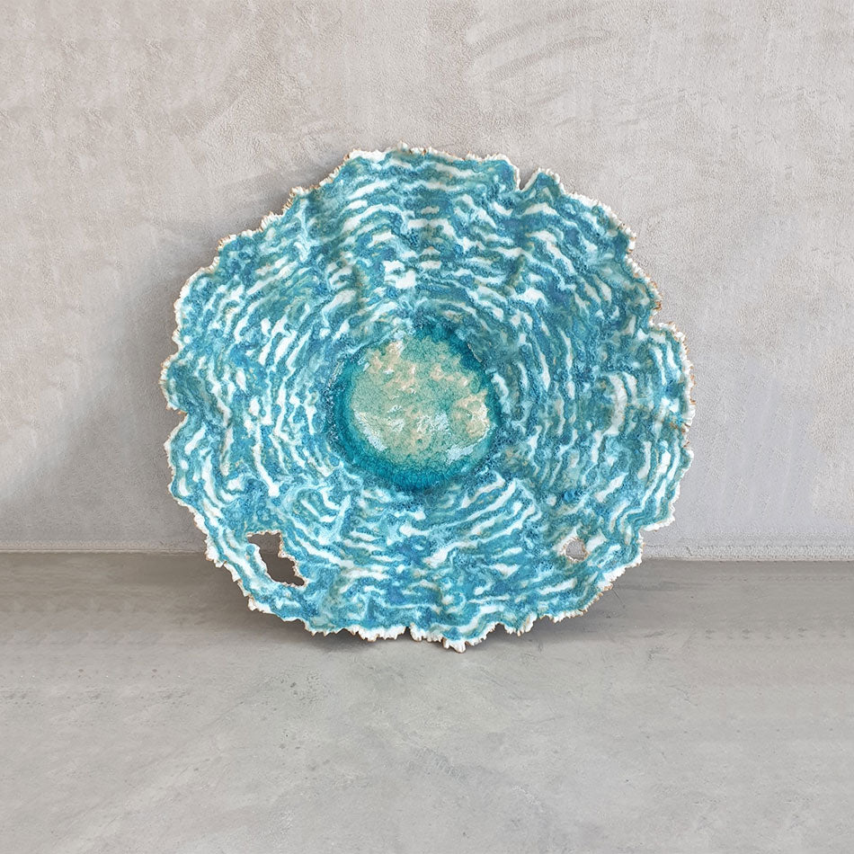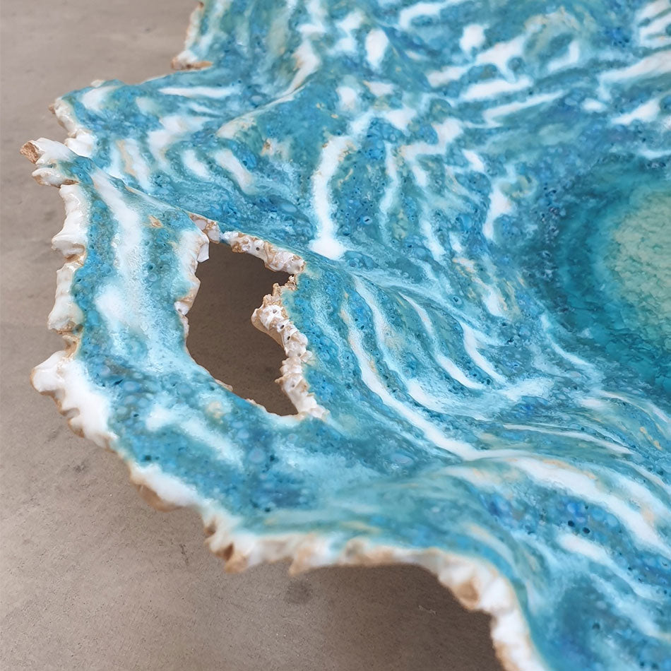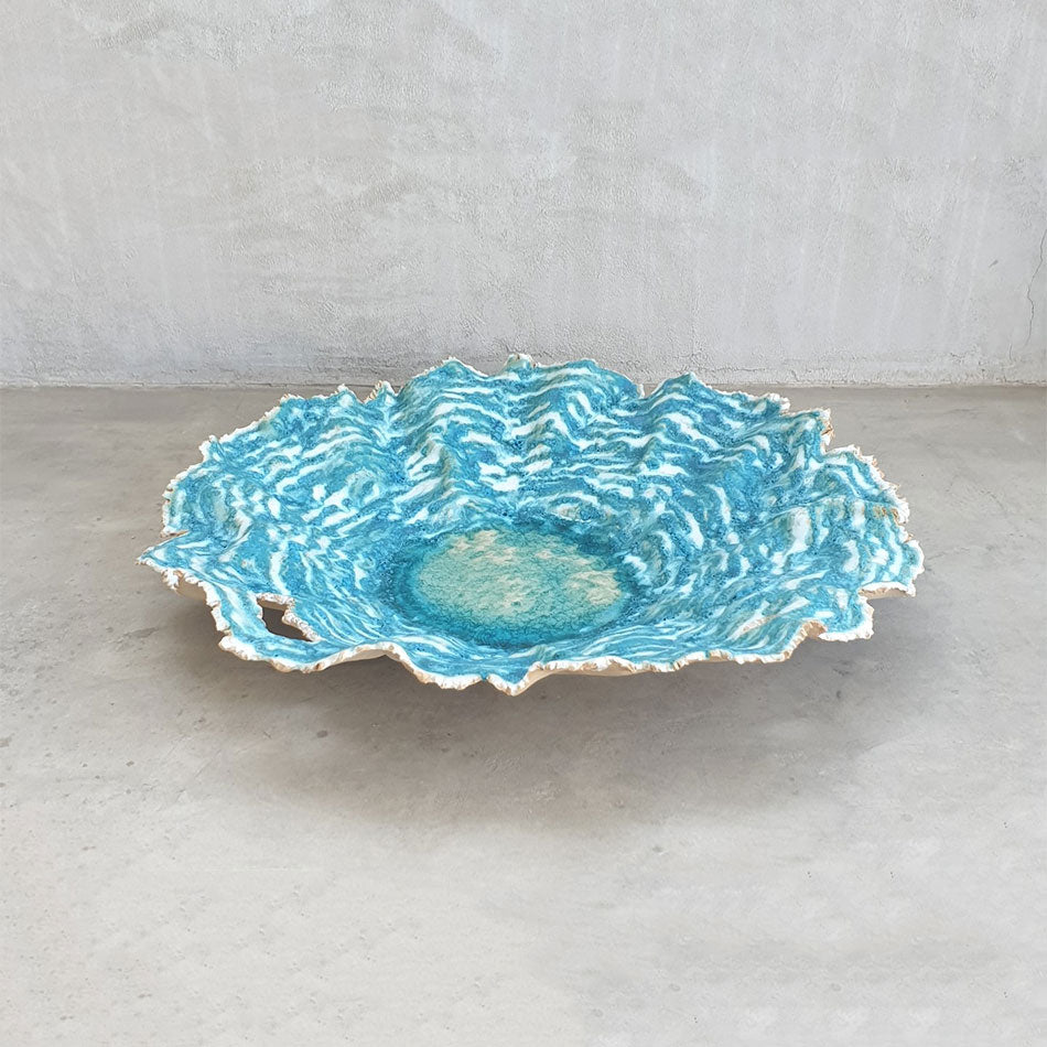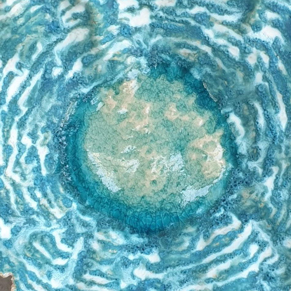 Karine Legay is a french Ceramist. Her artworks are always inspired by nature, natural elements like lava, earth and water. She likes to focus on contrasts between organic shapes and very smooth and shinny glazes, betweendark clay and bright turquoise color, or between pure shapes and very rough textures. She has recently been selected to work on commissions for two luxury hotels murals and decorative pieces. One of her creations has been shortlisted by the Dubai Ceramic Award 2020. Her series "When lava meet the ocean 1" has been exhibited at SIKKA ART FAIR 2022
