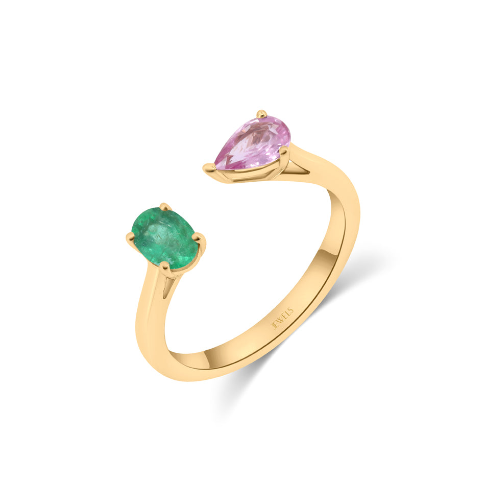 18k Gold & 1 emerald 0.47ct & 1 pink sapphire 0.45 ct