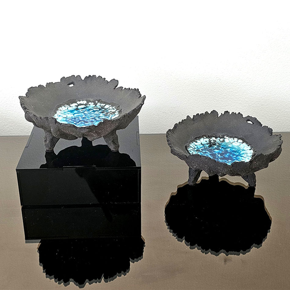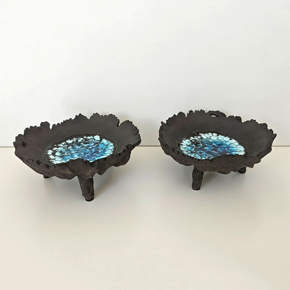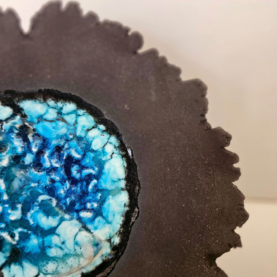 Karine Legay is a french Ceramist. Her artworks are always inspired by nature, natural elements like lava, earth and water. She likes to focus on contrasts between organic shapes and very smooth and shinny glazes, betweendark clay and bright turquoise color, or between pure shapes and very rough textures. She has recently been selected to work on commissions for two luxury hotels murals and decorative pieces. One of her creations has been shortlisted by the Dubai Ceramic Award 2020. Her series "When lava meet the ocean 1" has been exhibited at SIKKA ART FAIR 2022