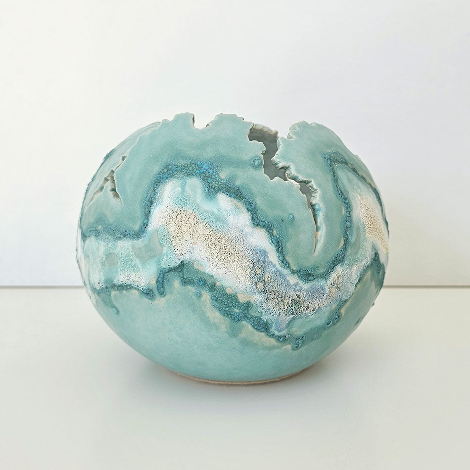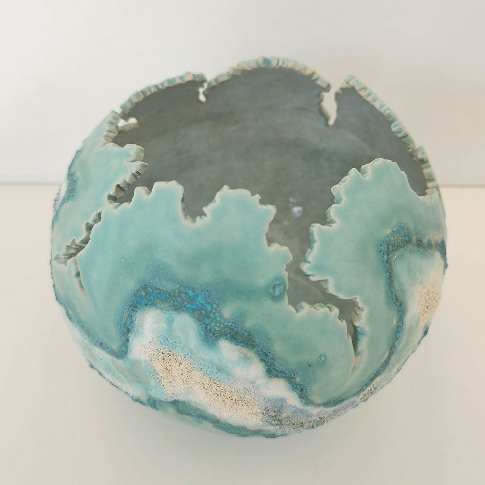 Karine Legay is a french Ceramist. Her artworks are always inspired by nature, natural elements like lava, earth and water. She likes to focus on contrasts between organic shapes and very smooth and shinny glazes, betweendark clay and bright turquoise color, or between pure shapes and very rough textures. She has recently been selected to work on commissions for two luxury hotels murals and decorative pieces. One of her creations has been shortlisted by the Dubai Ceramic Award 2020. Her series "When lava meet the ocean 1" has been exhibited at SIKKA ART FAIR 2022