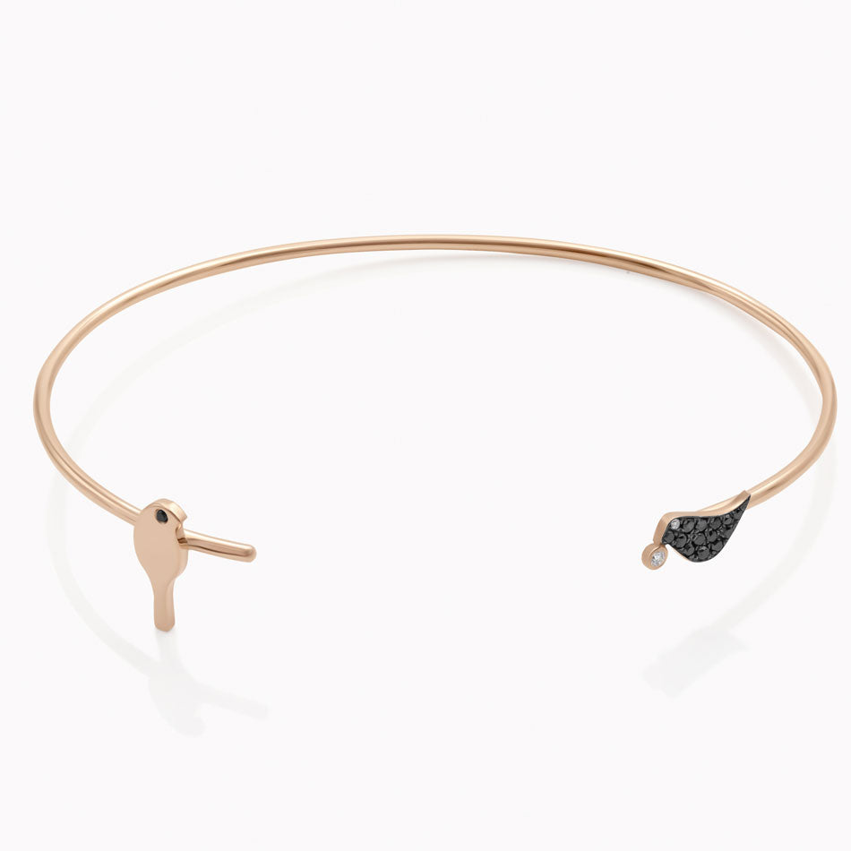 "Bird" Bracelet in 18kt pink Gold set with 0.06ct black Diamonds & 0.0125ct white Diamonds
