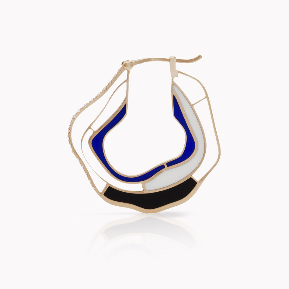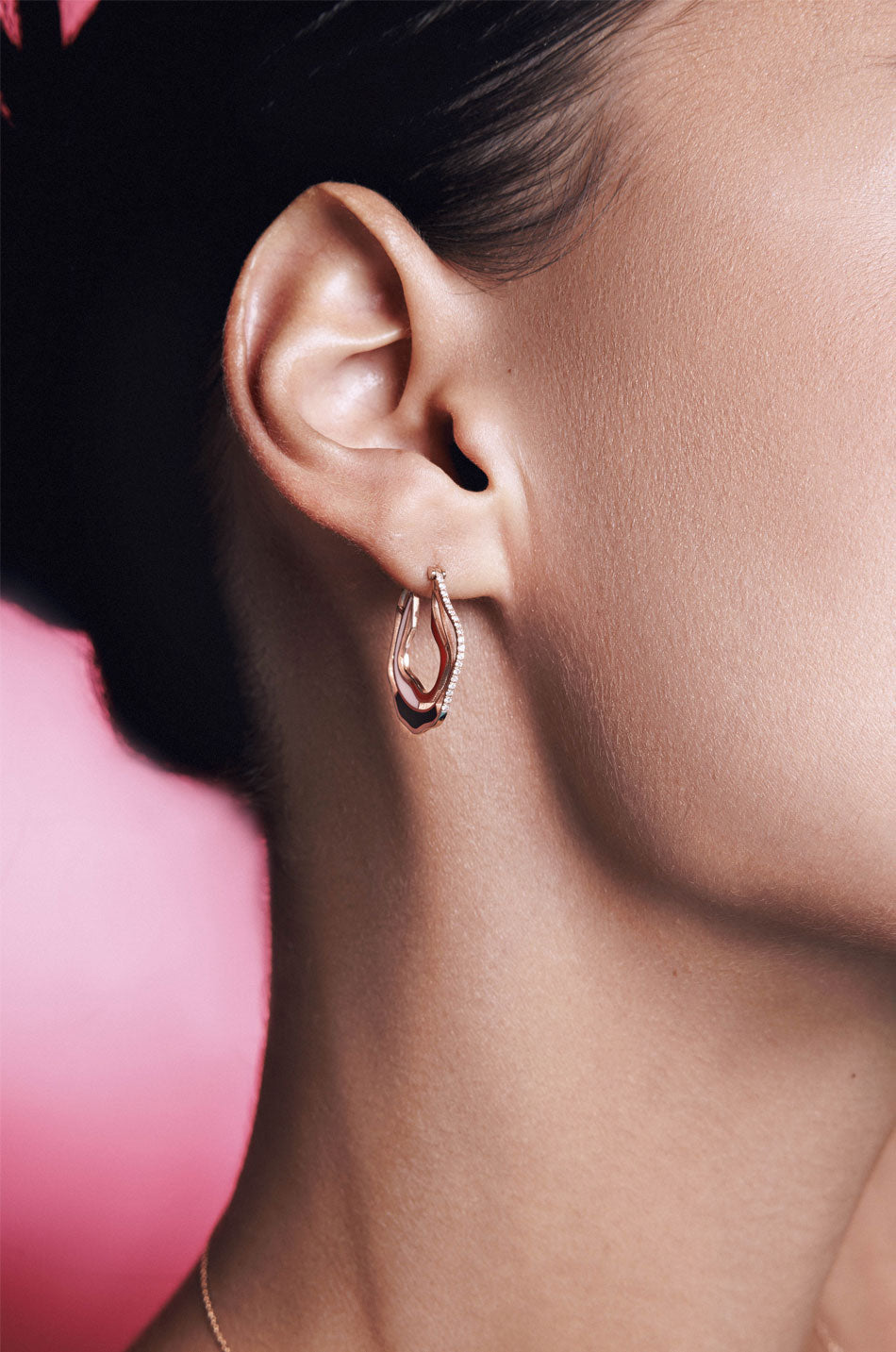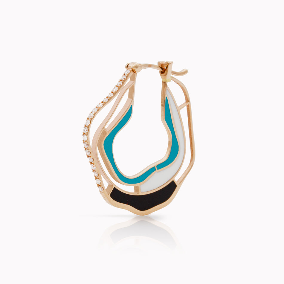 Earring in 18kt Pink Gold set with 0.06ct Diamonds & enamel