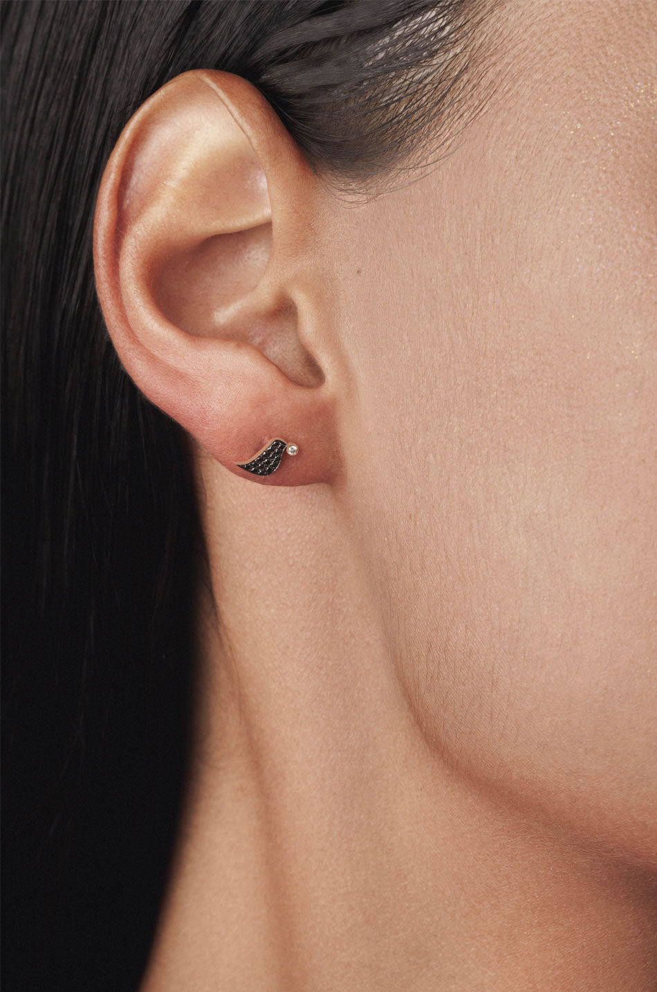 Earring in 18kt Pink Gold set with 0.045ct Black Diamonds & a 0.01ct White Diamond