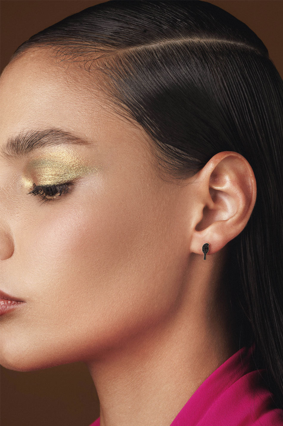 Earring in 18kt Pink Gold set with 0.055ct black Diamonds