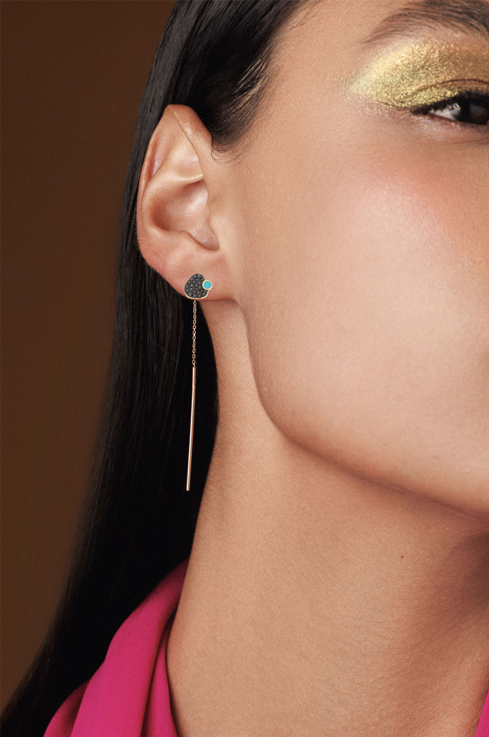 Earring in 18kt pink Gold set with 0.10 black Diamonds & enamel