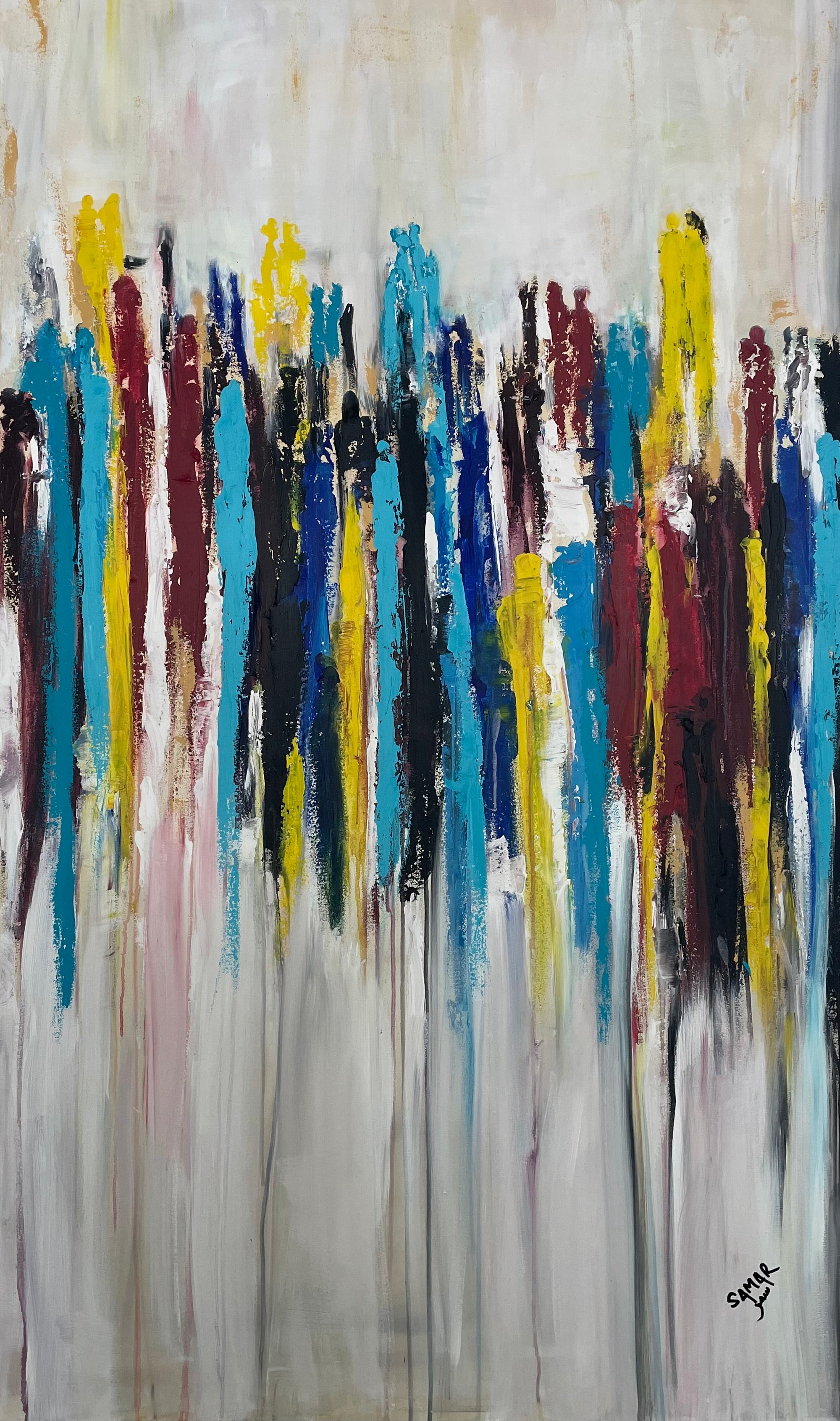 Today, each of Samar’s works offers us an entry point into the variety and richness that lies beneath every face and bust we encounter in life, whether applied in acrylic or oil paint. The blending of techniques across genres combined with her deep know how of the human face, emotions and body is a display of Samar’s work in multiple media, all bearing visible overlap.