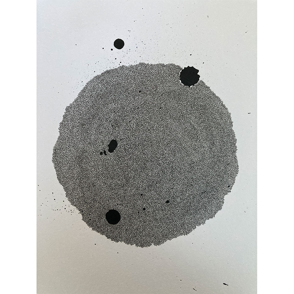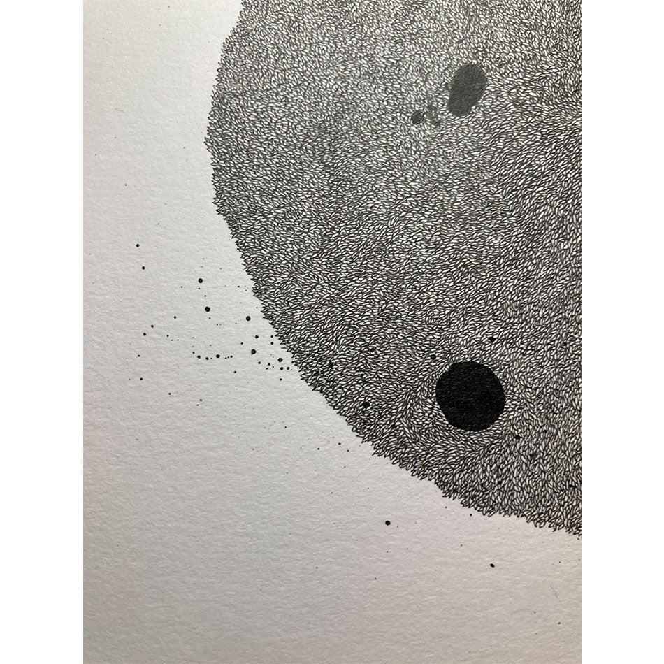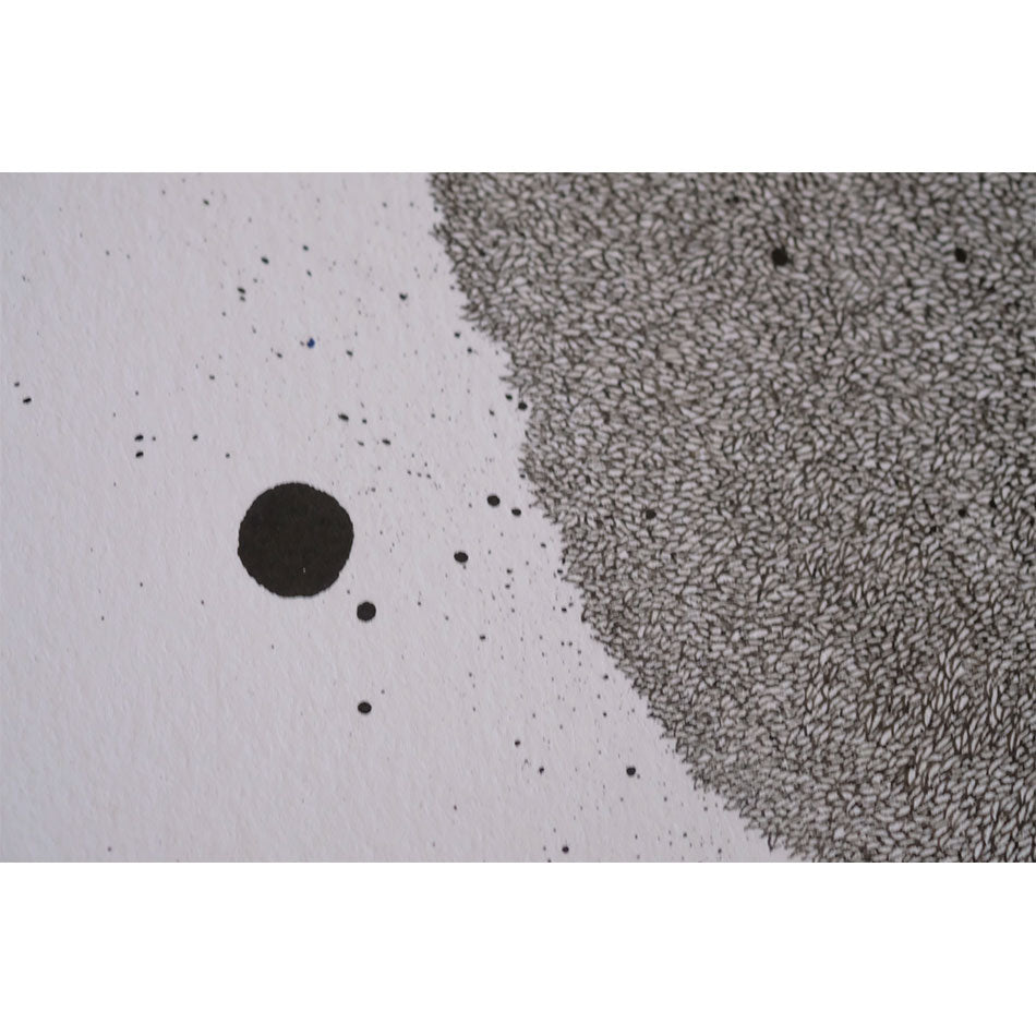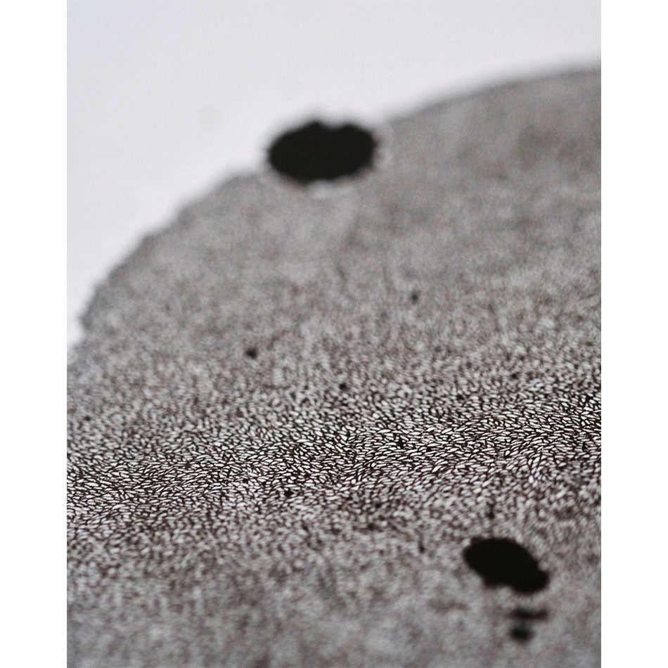 She explores microscopy which requires great attention to detail and rigor. It’s with her “magnifying glass” eye that she gives us here an abstract, organic and very detailed universe, in which the unique motif is repeated infinitely, on different supports (paper and everyday objects). The drawings have different sizes: smaller (30x30cm) to larger ones (100x100cm).
