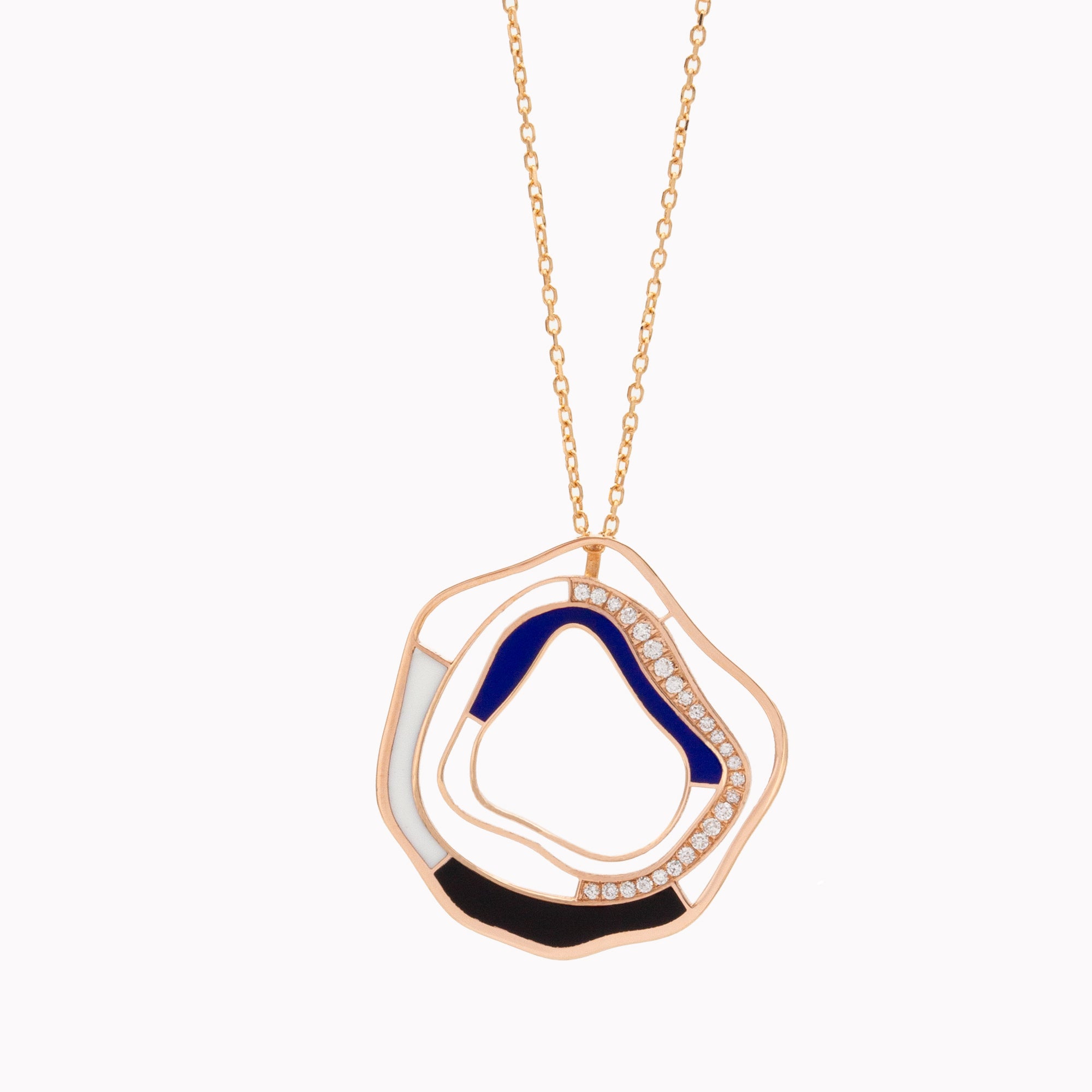 Pendant in 18kt pink Gold set with 0.07ct Diamonds & enamel
